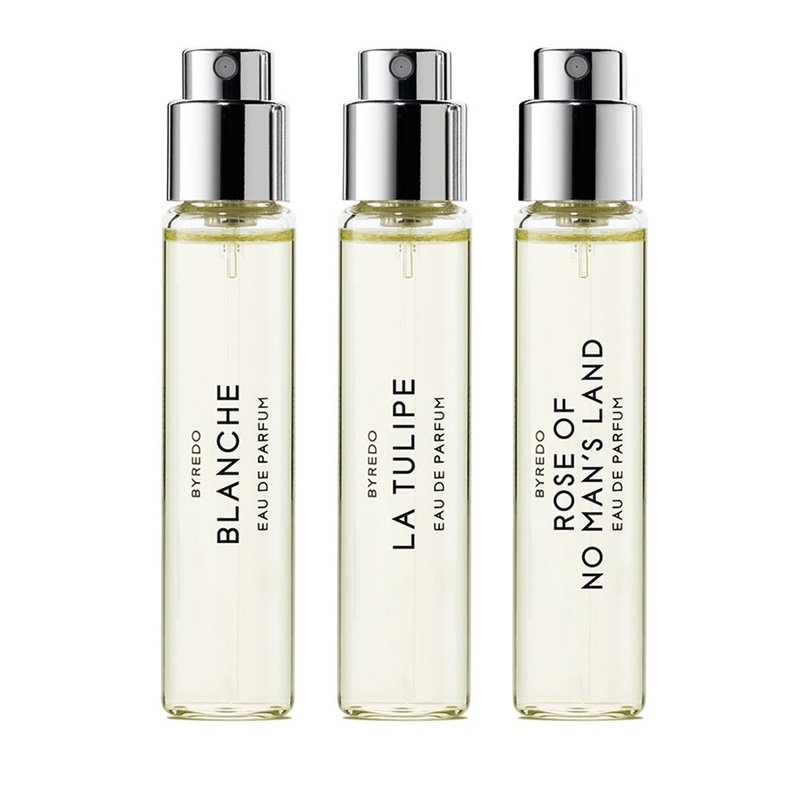A limited set of three iconic BYREDO scents in ideal travel size!La Slection Florale is a presentation box of three floral iconic scents: Blanche, La Tulipe and Rose of No Man’s Land.Housed in 12ml vials, these handy eau de parfum travel sprays are perfect to use with BYREDO’s functional and timeless ‘Ncessaire de Voyage” LEATHER TRAVEL CASE.