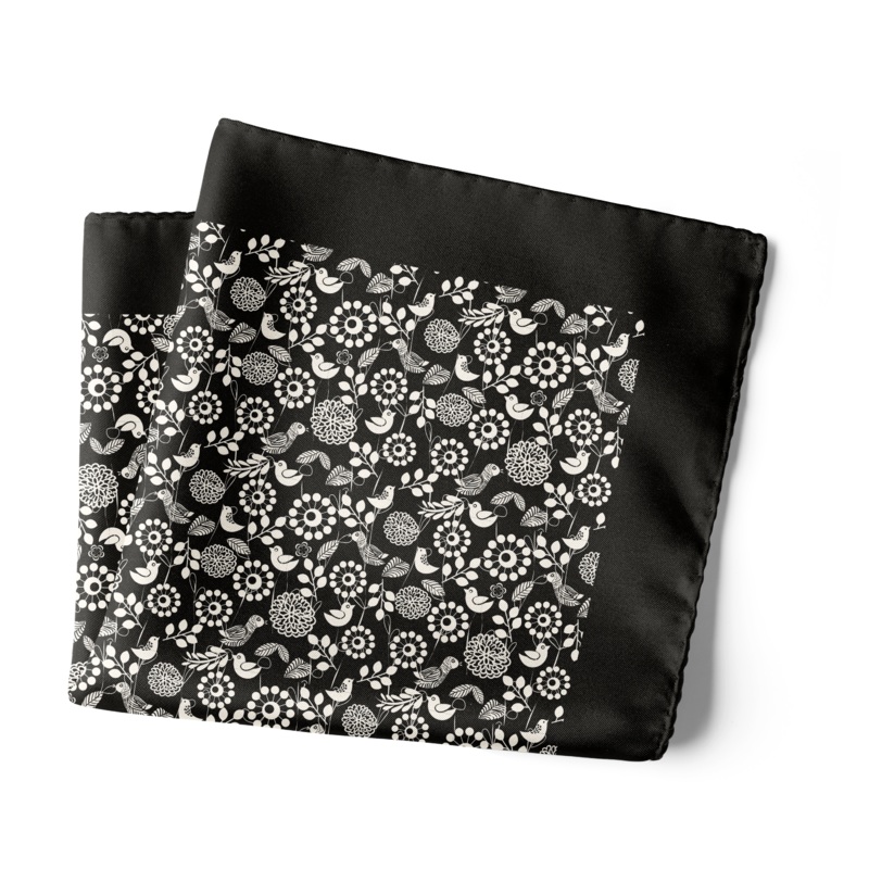 Birds symbolise freedom and are the link between the earth and heaven. Featuring beautiful Indian motifs and designs on a classic black background and crafted in pure silk, this pocket square is perfect for formal, casual and evening wear. Pair this one wi