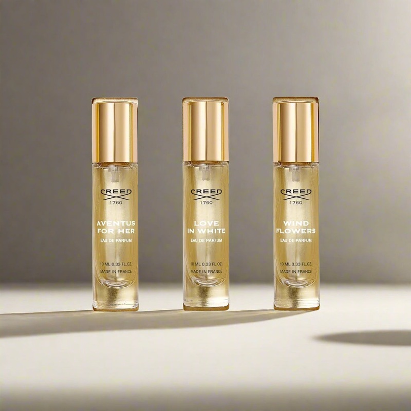 Perfect the art of gifting this festive season with The House of Creed. This luxurious gift set offers an exceptional olfactory experience, featuring three of the house’s most beloved feminine scents: Aventus for Her, Wind Flowers, and Love in White. Each fragrance is presented in an elegant 10ml Eau de Parfum bottle, perfect for travel or sampling.
