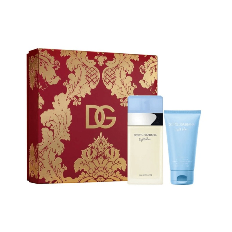 About The Product:Experience timeless freshness with the Dolce & Gabbana Light Blue Eau de Toilette Womens Gift Set. This captivating fragrance blends crisp Sicilian lemon, fresh apple, and delicate jasmine, creating an effortlessly radiant scent. Perfect for everyday wear, the 100ml EDT is complemented by a luxurious 50ml body cream, enhancing and prolonging the fragrance. Beautifully packaged, its an elegant gift for someone special – or a perfect treat for yourself.