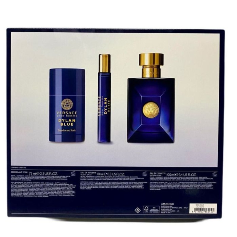 Set includes:- 3.4 oz Eau De Toilette Spray, 0.3 oz Eau De Toilette Travel Spray, 2.5 oz Deodorant Stick (Hard Box). Manufacturer Versace Gender Men Special New Arrivals Perfume Type Eau De Toilette Sizes Standard