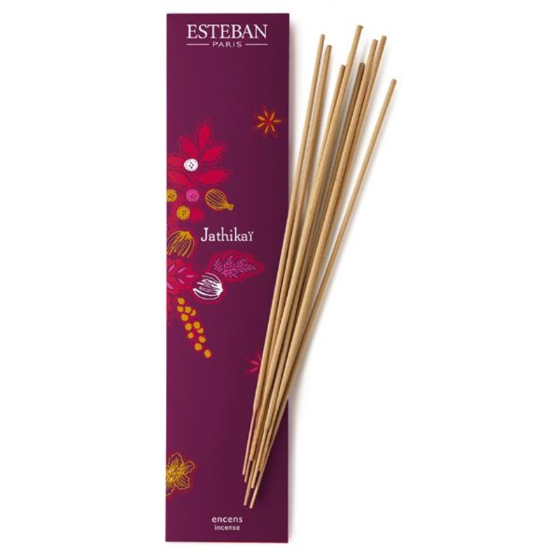 A spicy woody perfume.Key notes: bergamot, black pepper, cardamom ceylan, nutmeg Indonesia, chilli pepper, vetiver, cedar, & patchouli Indonesia.20 sticks. Burning time: approx. 45 min. per stick. Length: 30 cm / 11.7 in.*Details provided by Esteban.