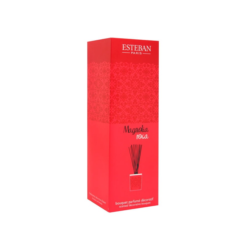 A floral fruity perfume. Key notes: pink pepper, magnolia nectar, petals of magnolia, osmanthus, rose absolute, and star ambre.This set includes a vase, a ceramic colored cap, 15 perfume sticks (22 cm / 8.6 in.), and a scented bouquet refill (100 ml / 3.3
