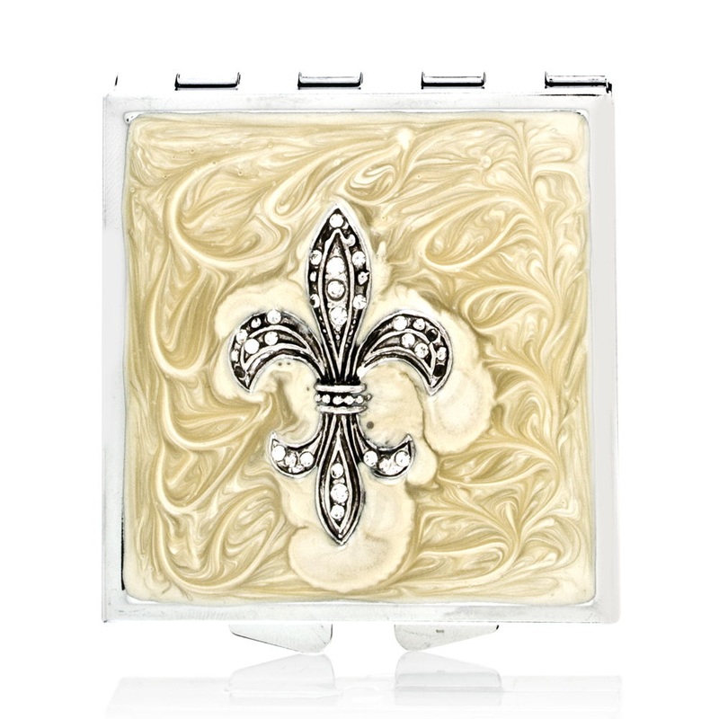 2.25″ x 2.25″ pocket mirror with decorative Fleur de Lis.