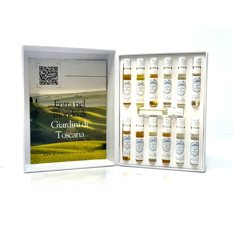 Giardini Di Toscana Discovery Kit is the perfect way to explore the exceptional world of this renowned perfume house. Inside the kit, you will find an exquisite selection of 12 unique fragrances, each crafted to evoke the beauty and spirit of Tuscany. This curated collection allows you to experience the full range of olfactory masterpieces from Giardini di Toscana, with scents inspired by the lush Tuscan gardens and the artistry of nature.