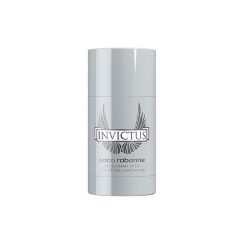 Paco Rabanne Invictus Deodorant Stick For Men 75ml.The fragrance opens with fresh grapefruit and a marine accord that lead to the heart of aromatic bay leaf and Hedione jasmine and a woody base of guaiac wood, patchouli, oak moss and ambergris.Top Notes: S