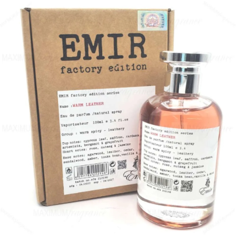 Fragrance Notes:Top: Cypress Leaf, Saffron, Cardamom, Artemisia, Bergamot and GrapefruitMiddle: Bulgarian Rose, Nutmeg and JasmineBase: Agarwood (Oud), Leather, Cedar, Sandalwood, Amber, Tonka Bean, Vanilla and MuskWarm Leather Emir is an Amber Woody fragr