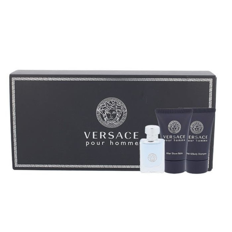Versace pour Homme 3 Pcs Mini Set includes:- Eau De Toilette Spray 0.16 oz, Hair and Body Shampoo 0.84 oz, After Shaving Balm 0.84 oz. Manufacturer Versace Gender Men Special New Arrivals Perfume Type Eau De Toilette Sizes Standard