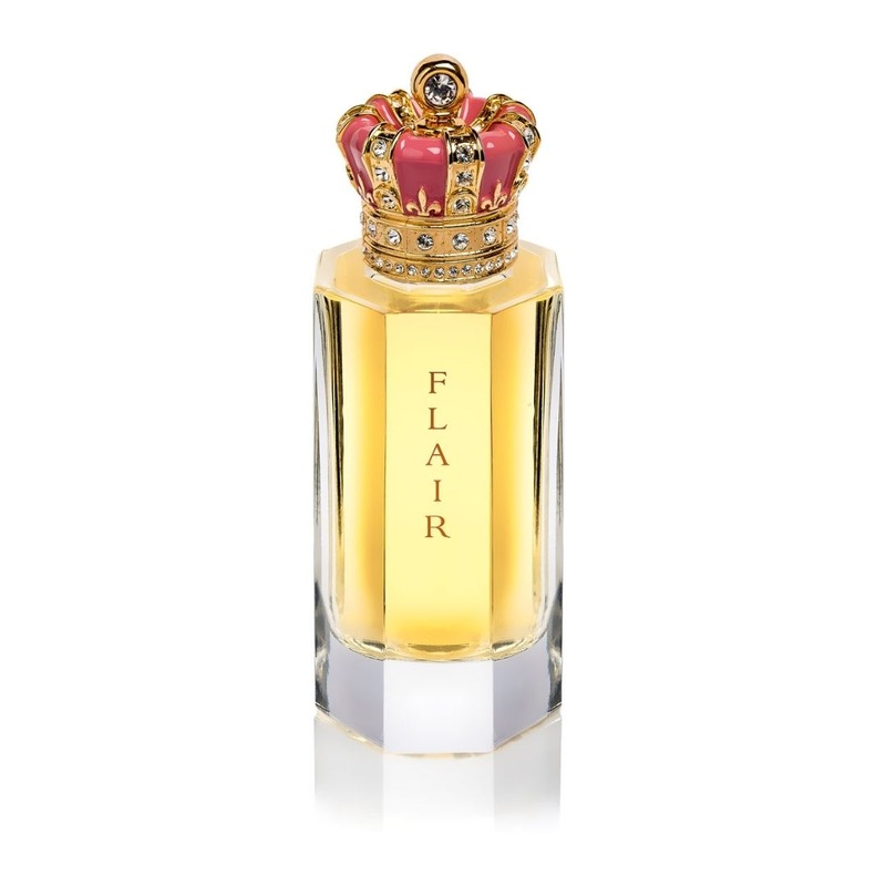Royal Crown - Flair Head Notes Bergamotto, vervain, cedar fruit, peach blossomHeart NotesAbsolute rose, violet, absolute jasmin Sambac, osmanthusBase Notes Absolute vanilla, patchouli, grey amber, sandal Mysore A fresh, floral fragrance of pure femininity