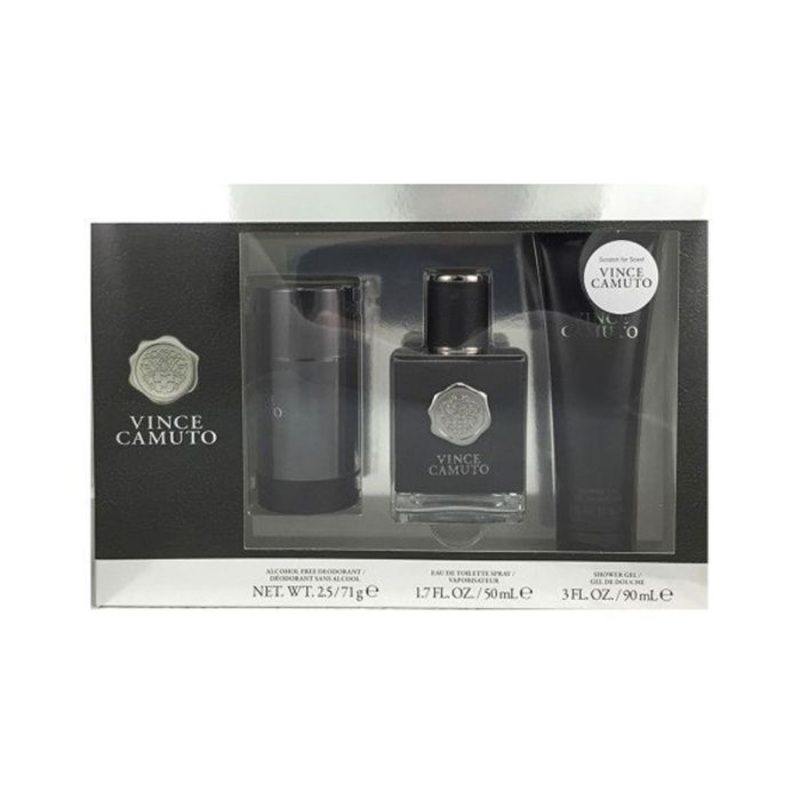 Set includes:- EDT 3.4 oz, DEODORANT 2.5 oz, Black Box 15 ml. Manufacturer Vince Camuto Gender Men Perfume Type Eau De Toilette Sizes Standard